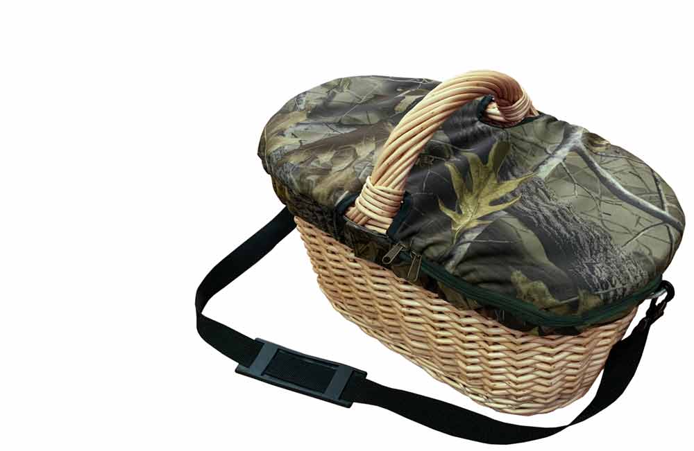 Cestino Funghi in Vimini Intrecciato con Chiusura in Tessuto e Tracolla